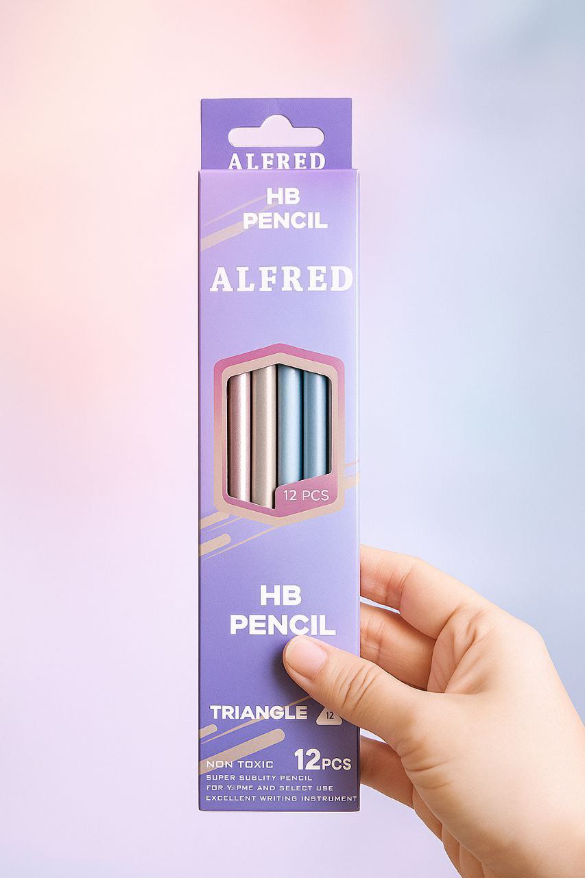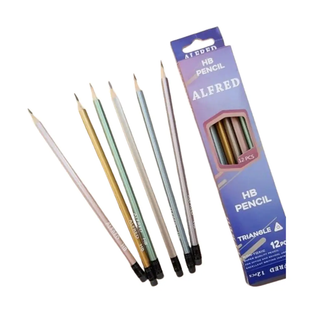 مداد سیاه متالیک Alfred بسته ۱۲ عددی، بدنه سه گوش
